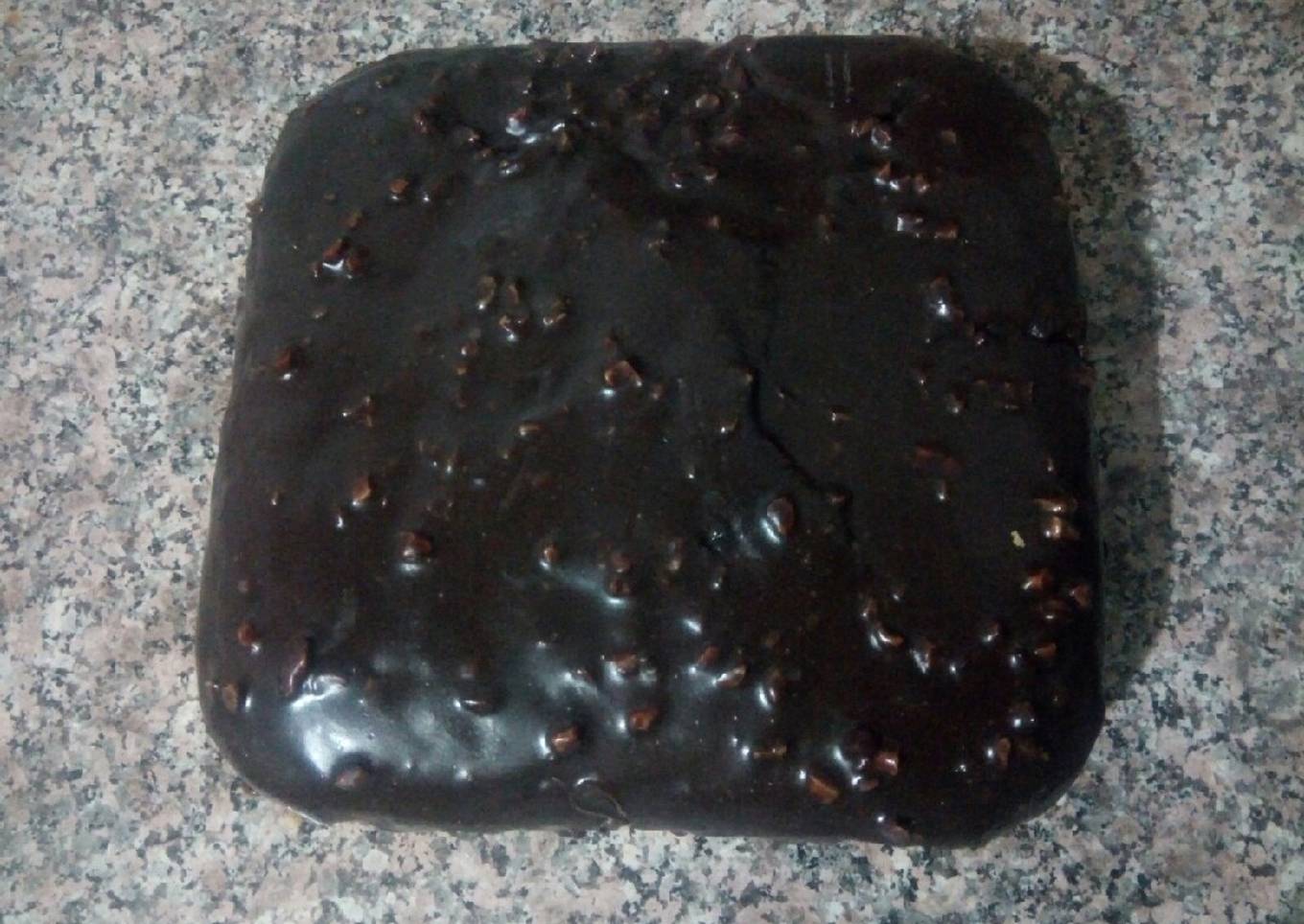 - Enfourner à 220 degré pendant 40 min. Laissez le refroidir. Mélangez le chocolat fondue avec les cacahuètes et enrober le cake.