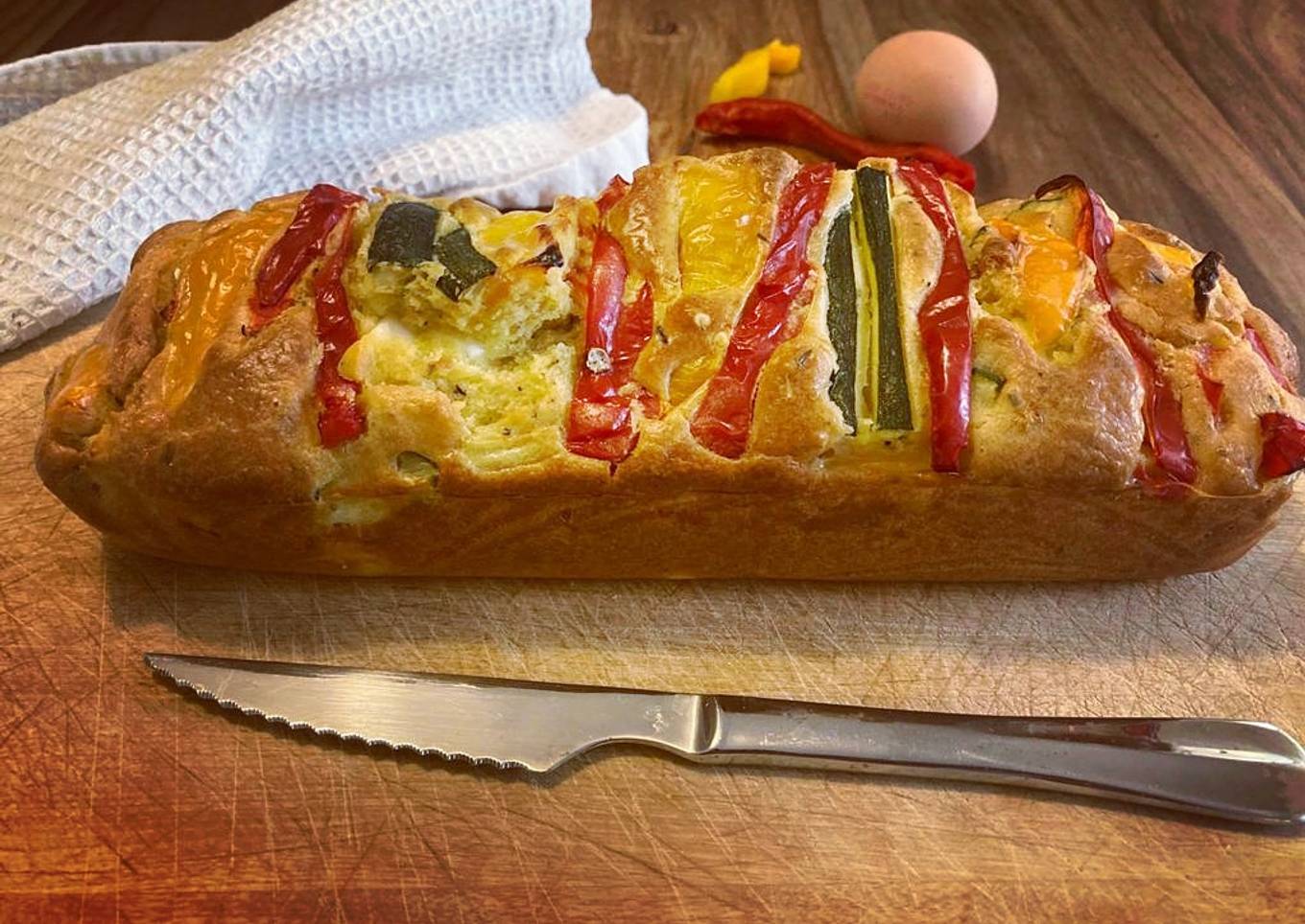 Steps to make to make Cake salé poivrons courgette et fêta !