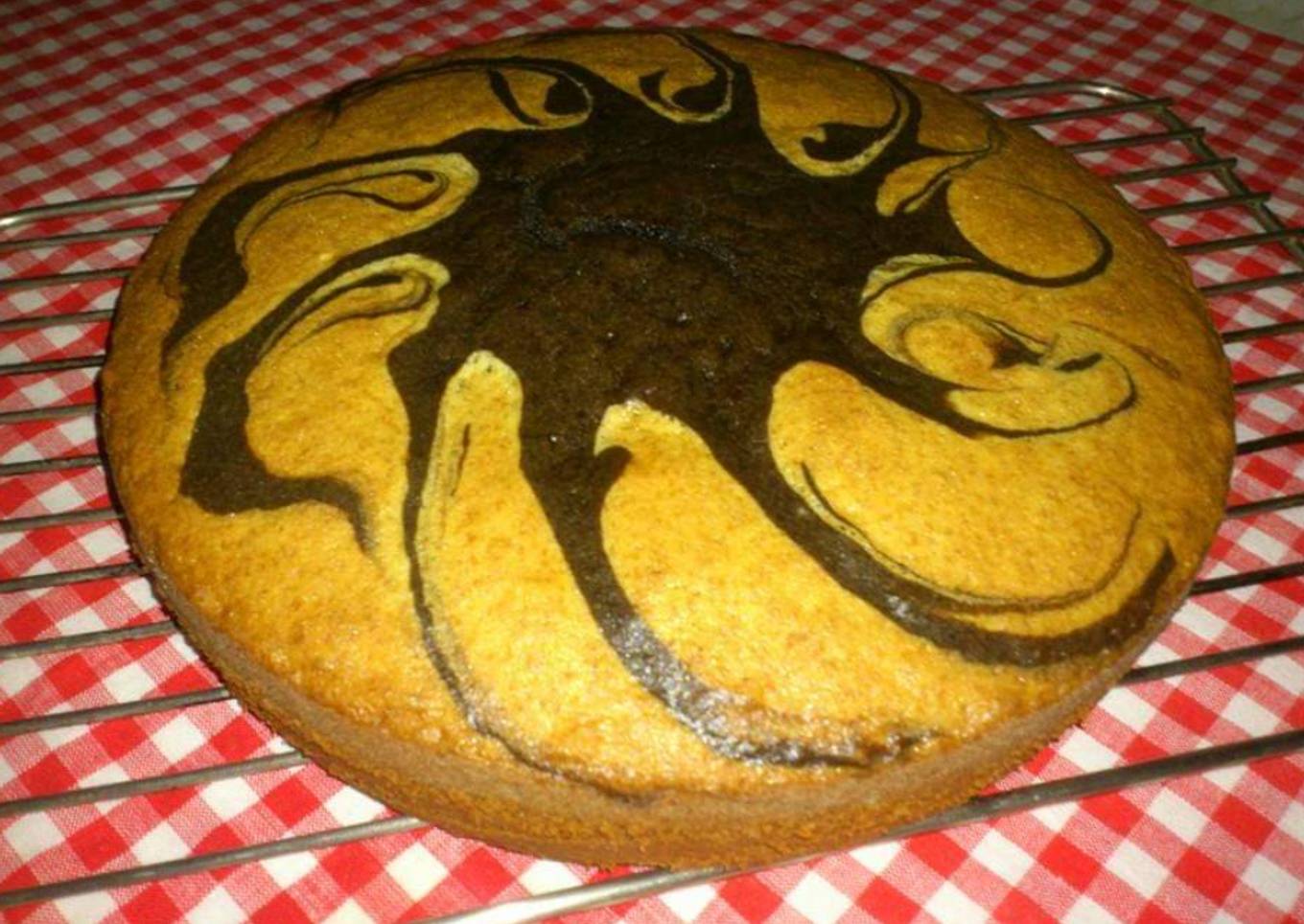- Après avec le couteau faites des vas du centre vers l'extérieur en forme de soleil pour l'effet marbré après la cuisson du cake.