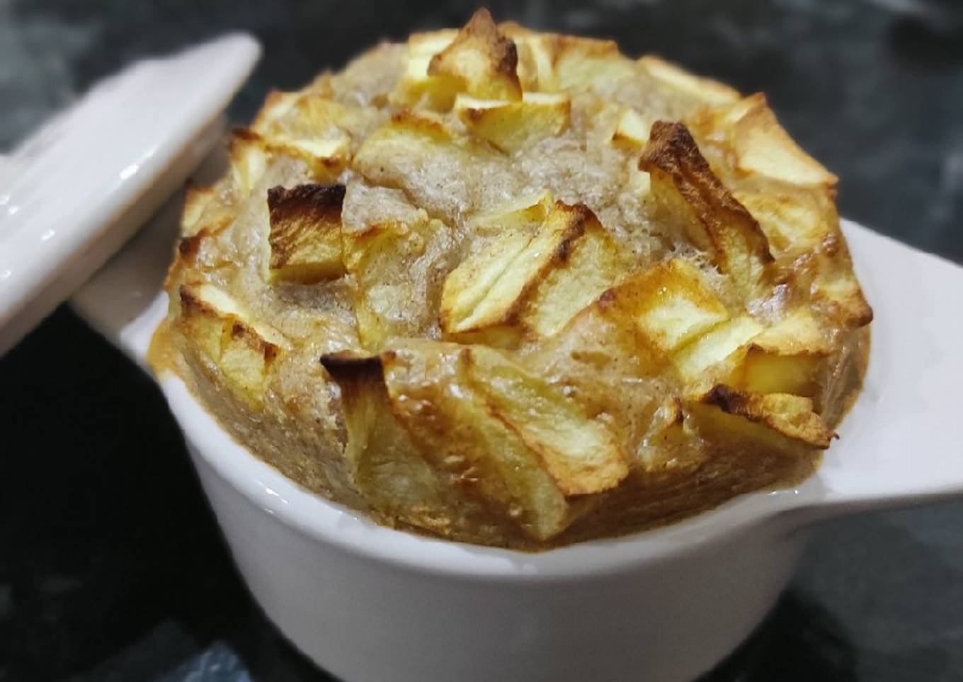 - 🌸 Ajouter l'autre moitié de la pomme en cube sur le dessus de la préparation et enfourner pour 30 min (à surveiller selon le four de chacun)