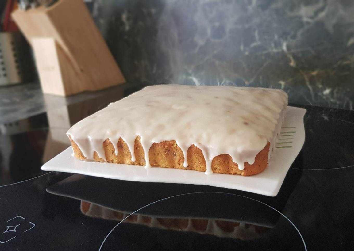 - Une fois cuit, laissez refroidir une bonne heure et passez au glaçage du gâteau (facultatif.)